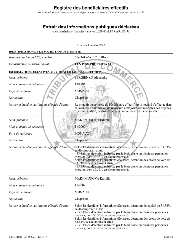 А на сегодняшний день несовершеннолетние Камилла, Александра и Владимир владеют виллами на Лазурном берегу через фирмы Ecossaise Property SCI и Ecossaise Property II SCI, бенефициарами которых они также числятся.