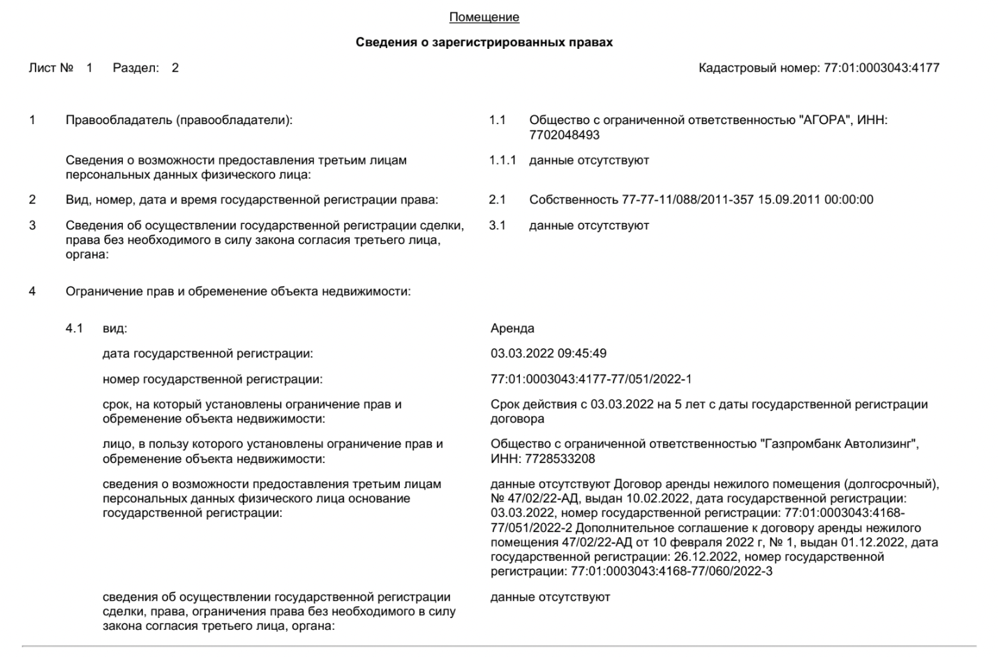 Помещение рядом с метро «Бауманская» (улица Ладожская, дом 1/2) площадью 345,5 кв. м за 110 млн рублей. Этот объект находится в аренде у «КМ Ресторанс» (ресторан «Сыто Пьяно»).