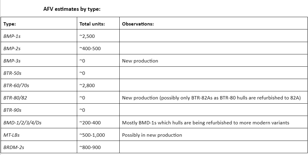 • Из 4000 БМП-1/2/3 в рабочем состоянии находятся 1900 единиц.