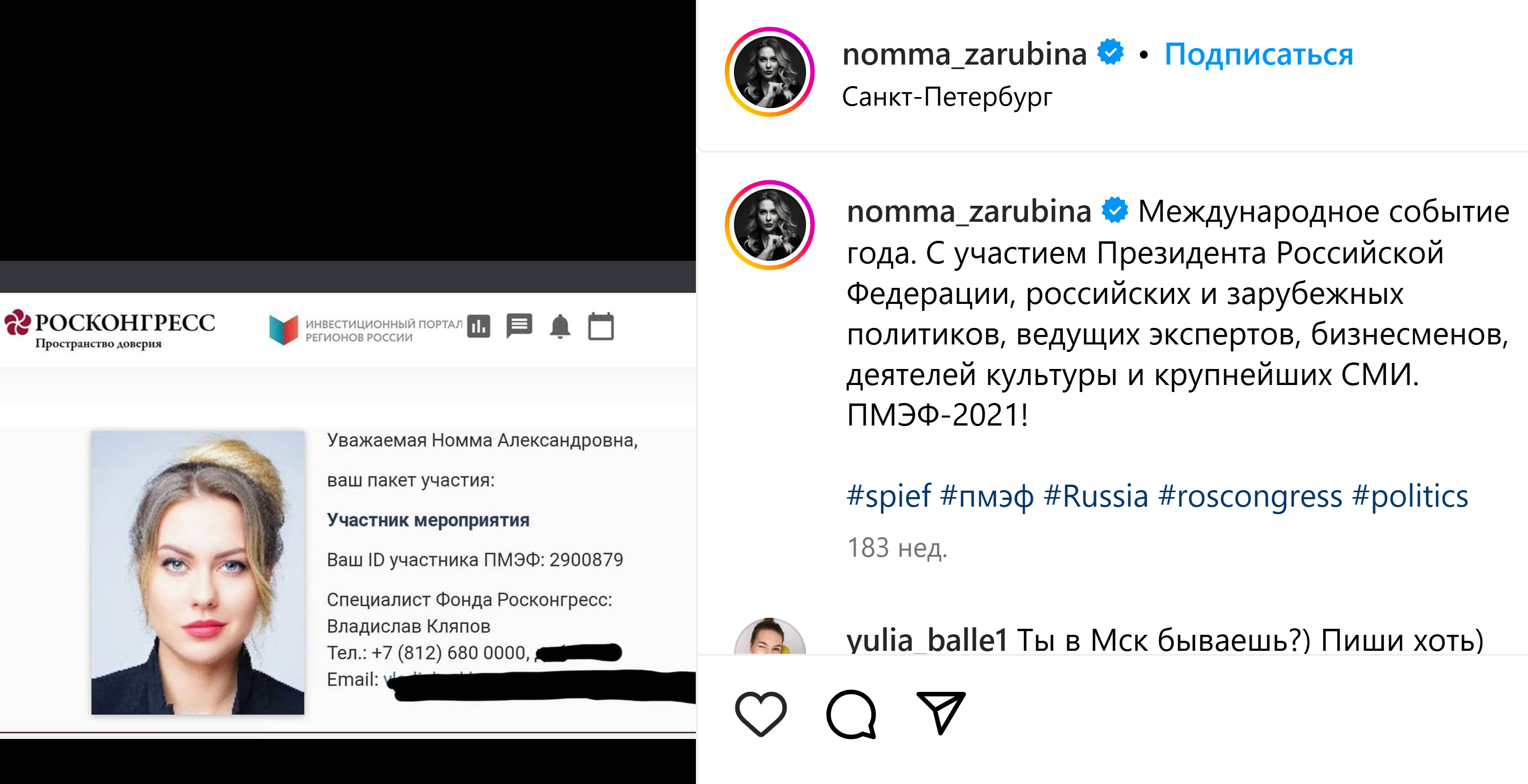 Номма Зарубина родилась в Томске в 1990 году, в Петербурге окончила СПбГУ (изучала «геополитику»), затем магистратуру РАНХиГС по теме «международная безопасность» и эмигрировала в США в 2016 году. В Нью-Йорке она вышла замуж за американца, родила ребенка и начала работать в местном Российском культурном центре (RCNY), где отвечала за организацию мероприятий (таких как, например, патриотическое шествие «Бессмертный полк»). Этот центр был основан россиянкой Еленой Брэнсон, ранее возглавлявшей Координационный совет организаций российских соотечественников (КСОРС) в США — формально независимой, но де-факто подведомственной МИД РФ (о том, как КСОРСы стали инструментом кремлевской пропаганды, The Insider уже писал). Брэнсон даже стала крестной матерью дочери Зарубиной. А потом к Брэнсон нагрянуло ФБР, обвинив ее в том, что она работает без регистрации в интересах российского правительства и получает задания и финансирование от высокопоставленных российских чиновников. Брэнсон немедленно ретировалась в Россию, где стала звездой кремлевского телевидения, а Зарубина осталась жить в США, хотя до 2022 года продолжала летать в Россию (в том числе и после начала полномаcштабного вторжения).