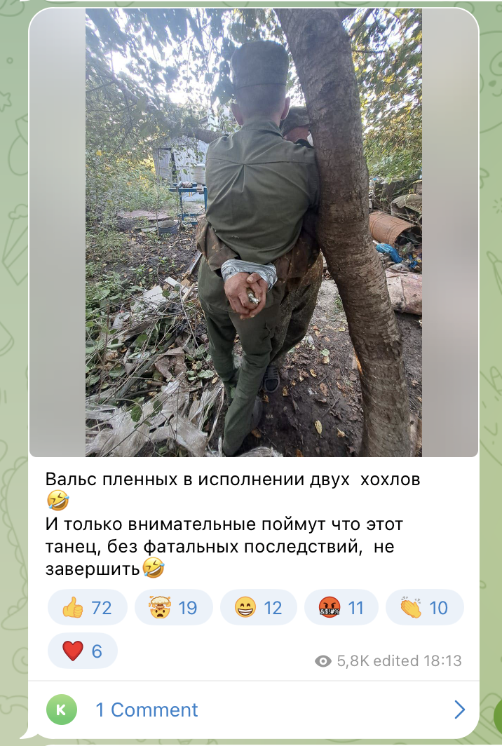 «Вальс пленных в исполнении двух хохлов🤣 И только внимательные поймут что этот танец, без фатальных последствий, не завершить🤣» <орфография, пунктуация и оформление сохранены — The Insider>.