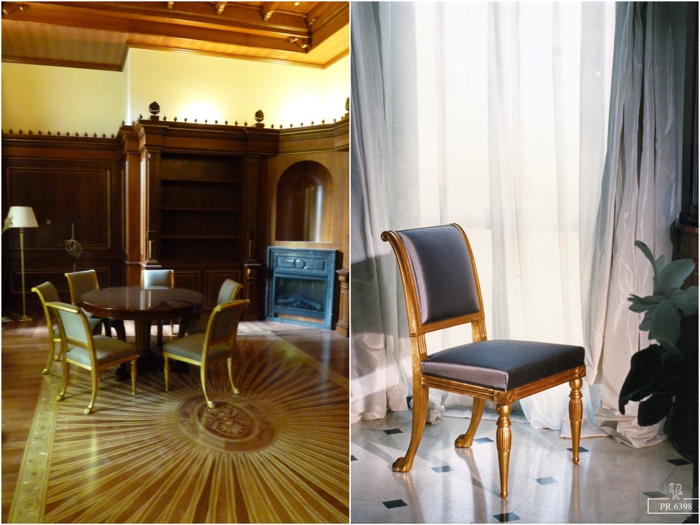 Классицистическую организацию интерьера и скопированные предметы мебели западноевропейских стилей классицизма можно обнаружить на многих фотографиях из дворца.